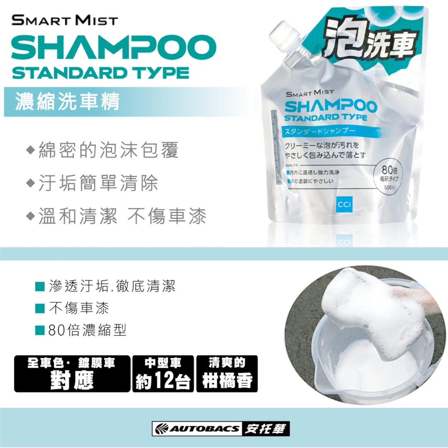 使用時,倒一些就可以洗整台車,也可以有效起泡。