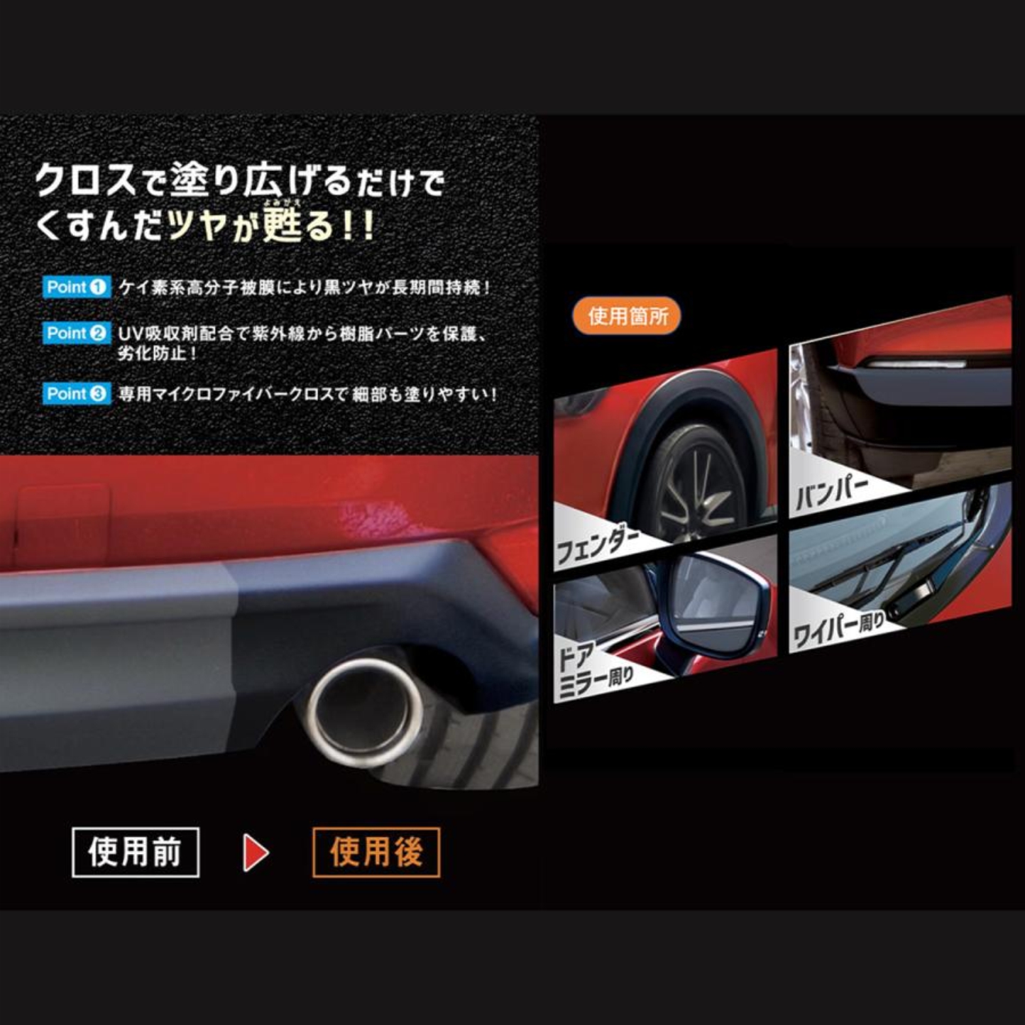讓未上漆的黑色樹脂增添光澤!(擋泥板.保險桿.雨刷周圍.後視鏡周圍.等望件)