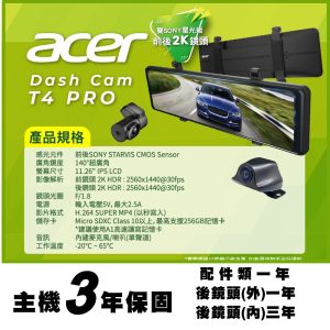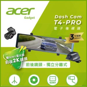 【安托華推薦】Acer T4-PRO電子後視鏡 2K獨立分離式前後鏡頭 科技執法偵測 行車紀錄器(後鏡頭車內)不含裝