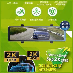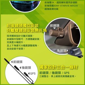 雙SONY 2K獨立分離式前後鏡頭,高清畫質,支援倒車顯影功能。