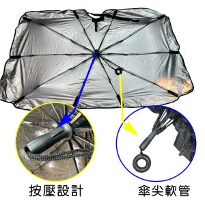 打開時像撐傘一樣展開,直接放置於前擋玻璃內側
