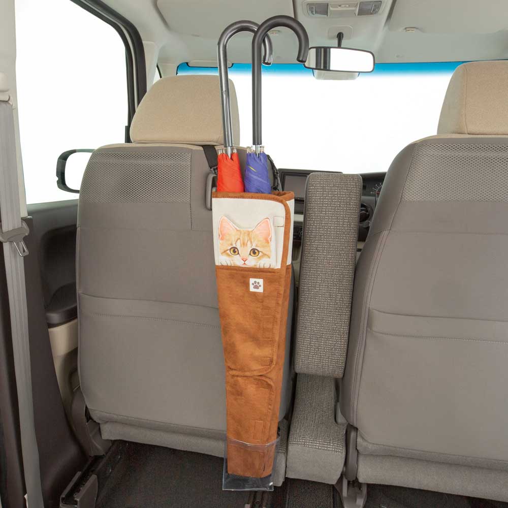 一個可愛的雨傘套,上面有一隻偷看的小貓的插圖。