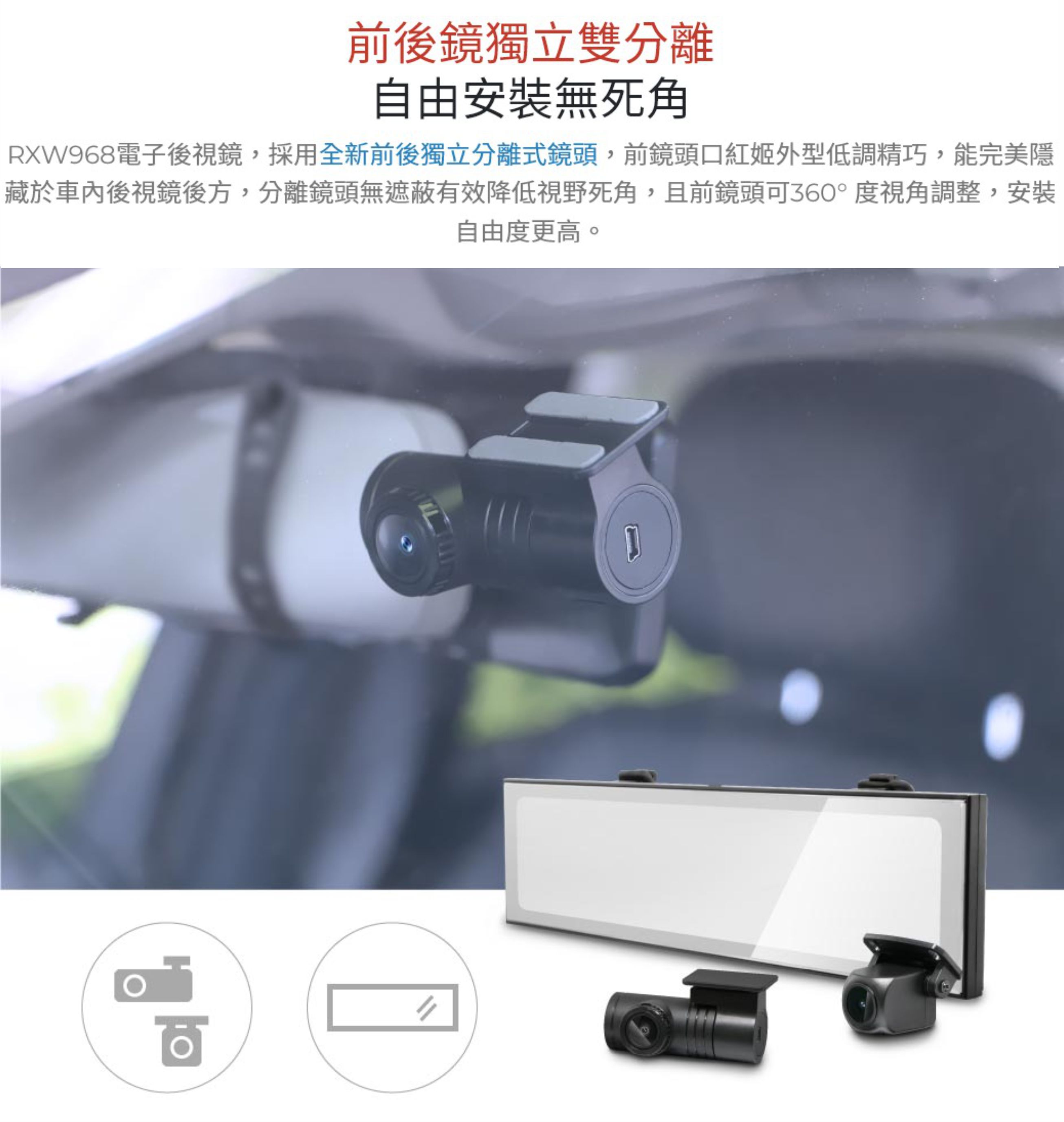 ★ 前後鏡獨立雙分離,自由安裝無死角