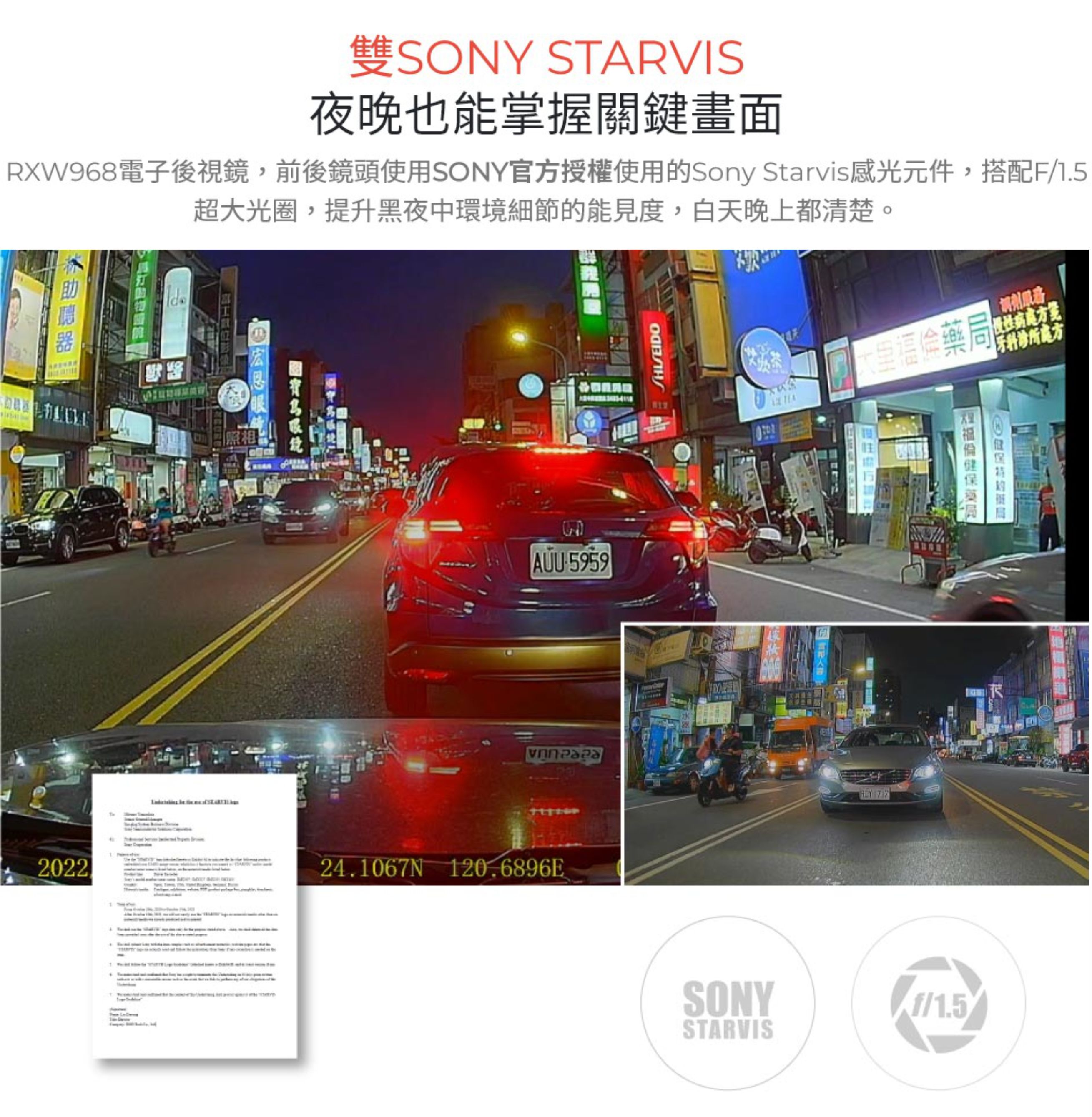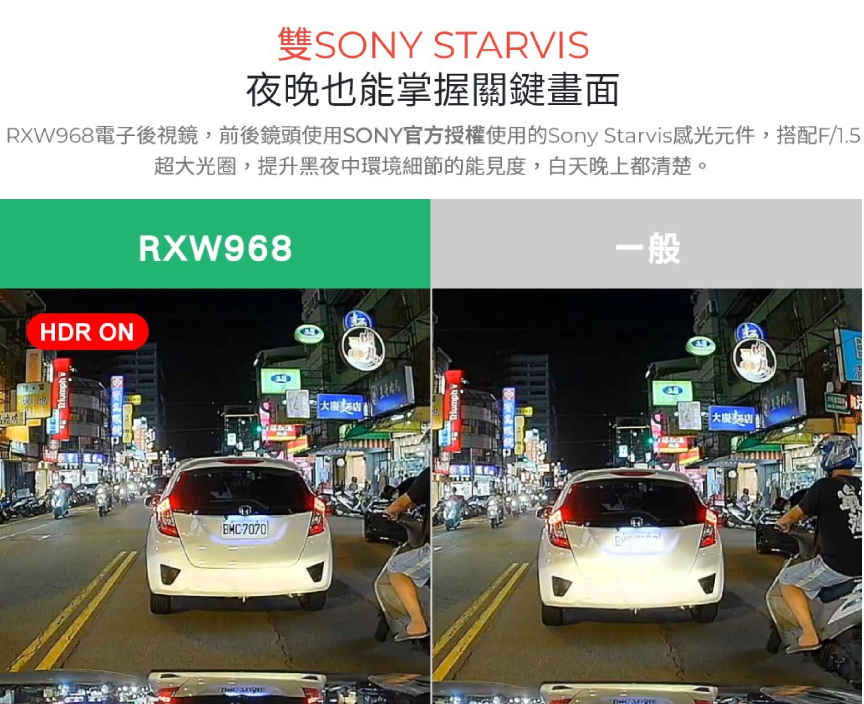 ● 感光元件:前後鏡頭 SONY STARVIS CMOS Sensor