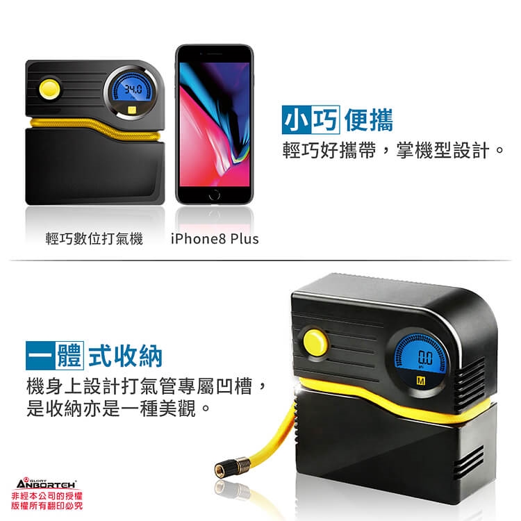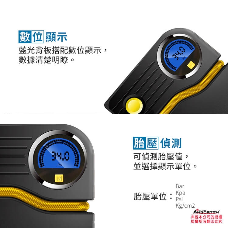 單手便攜,輕巧操作,智能科技,數位顯示,預設胎壓,自動充停