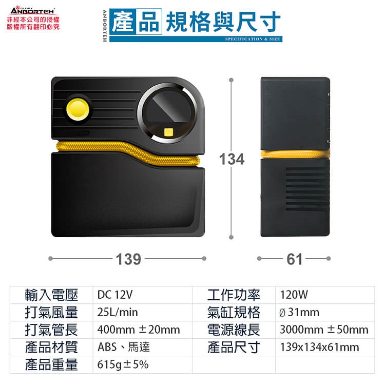 【ANBORTEH 安伯特】胎神 輕巧數位打氣機 ABT-E031