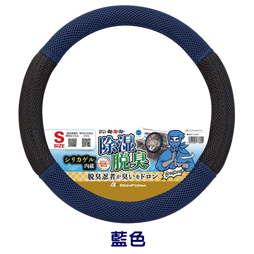 【BONFORM】Silitech Fiber 矽力纖維方向盤套 藍6951-01 877384 S號 吸汗除濕 除臭抗異味 透氣網布