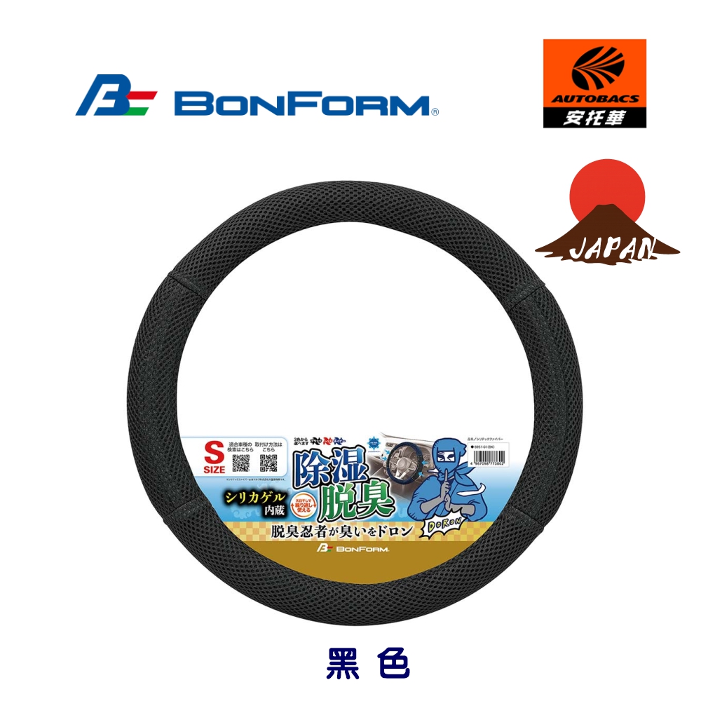 【BONFORM】Silitech Fiber 矽力纖維方向盤套 黑 6951-01 877380 S號 吸汗除濕 除臭抗異味 透氣網布