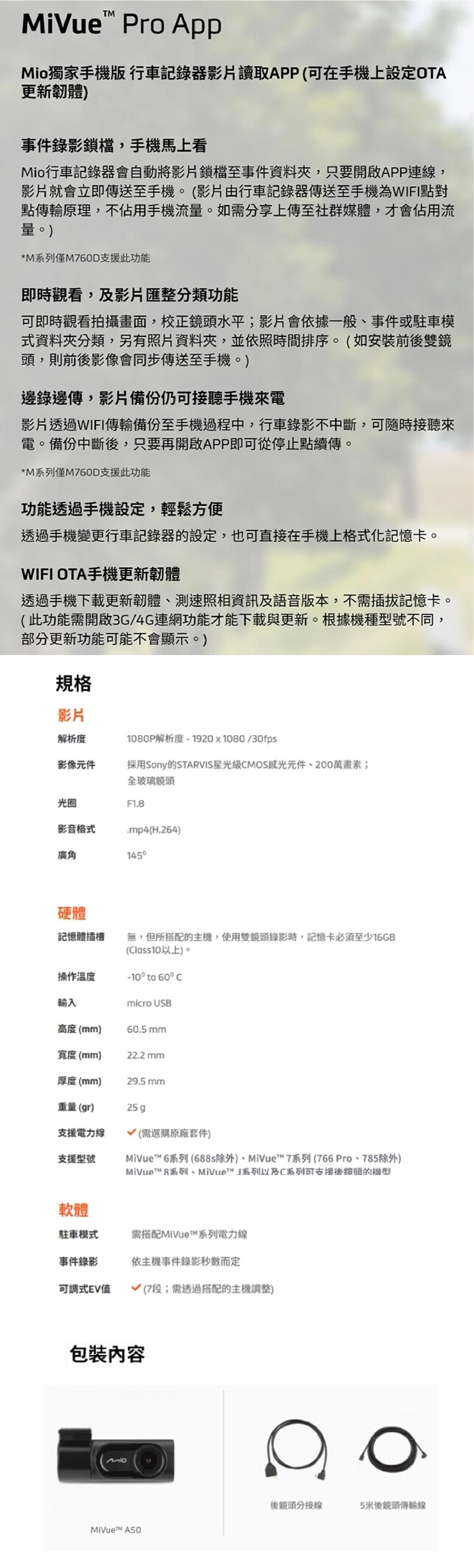 【MIO】MiVue 848+A50雙鏡頭星光級 SONY+WIFI+測速 行車記錄器 雙鏡頭 前後行車紀錄器(安托華)