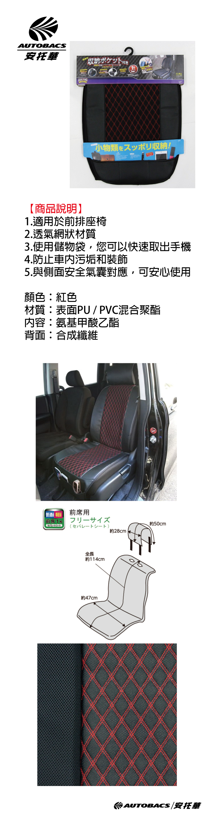 ●適用於前排座椅,透氣網狀材質