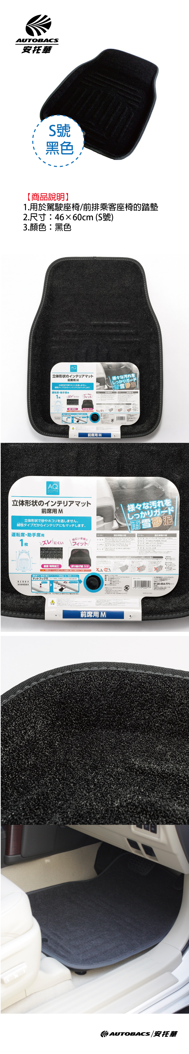 1.用於駕駛座椅/前排乘客座椅的踏墊