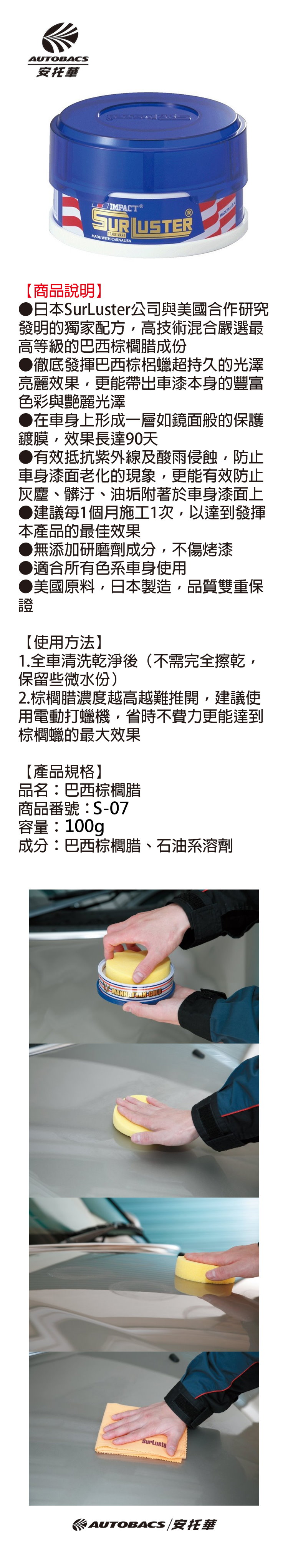 ●日本SurLuster公司與美國合作研究發明的獨家配方,高技術混合嚴選最高等級的巴西棕櫚腊成份