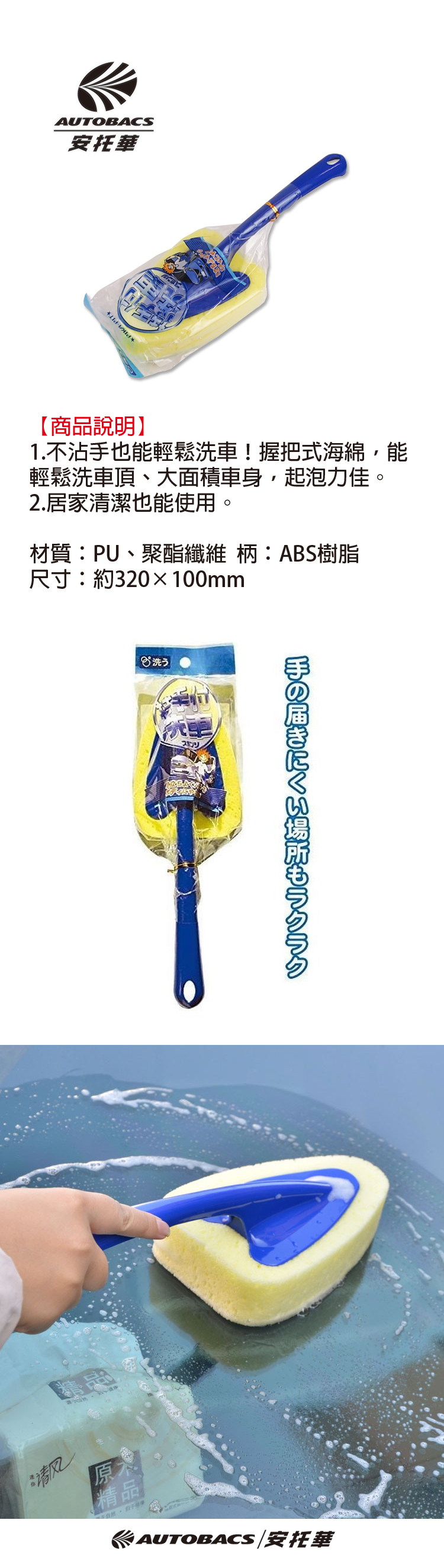 ●不沾手也能輕鬆洗車!握把式海綿,能輕鬆洗車頂、大面積車身,起泡力佳。