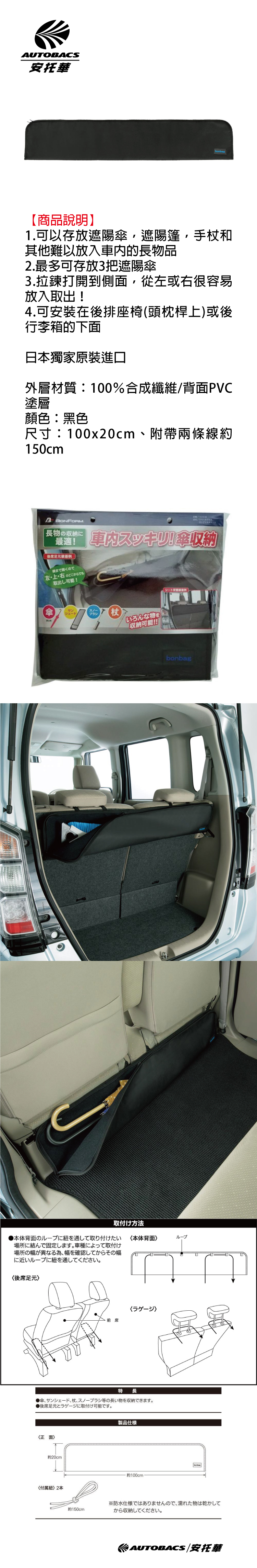 1.可以存放遮陽傘,遮陽篷,手杖和其他難以放入車內的長物品