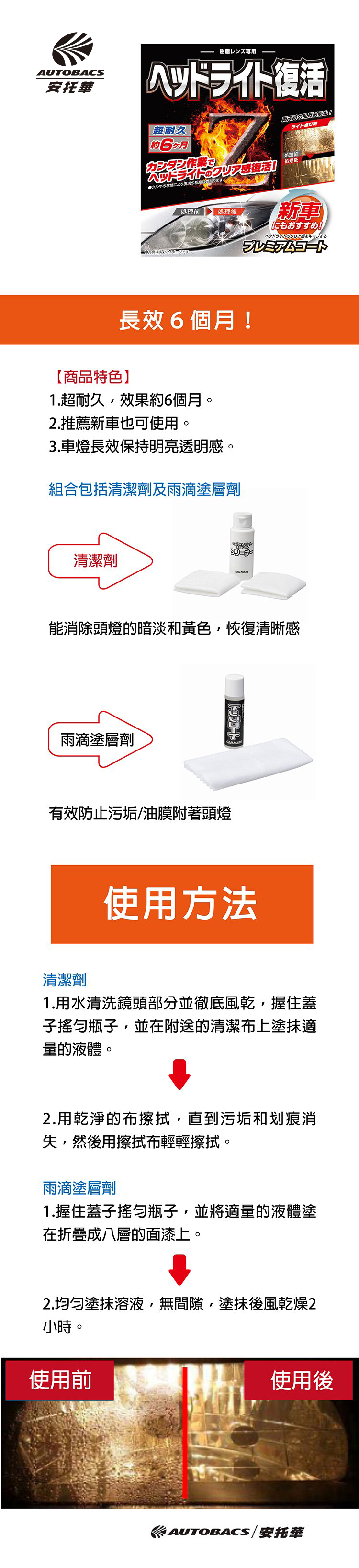 3.車燈長效保持明亮透明感。