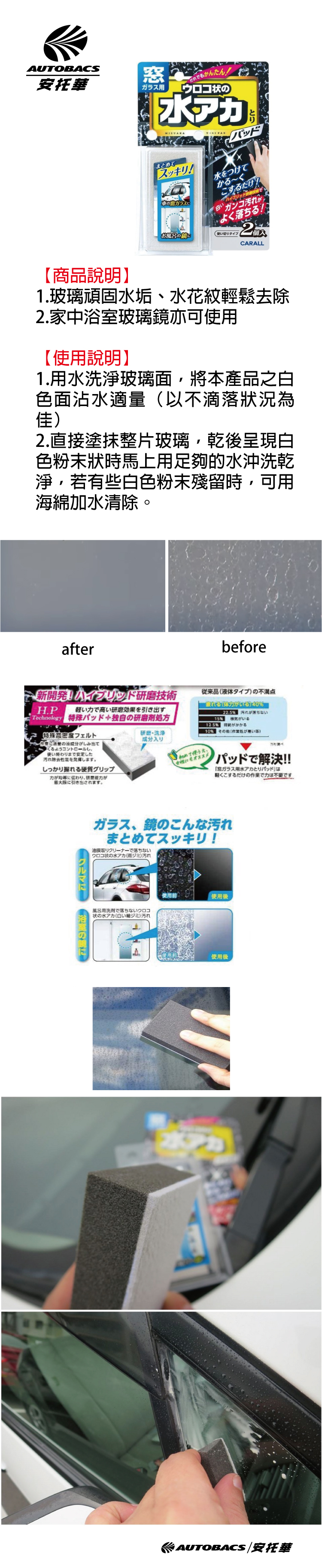 2.直接塗抹整片玻璃,乾後呈現白色粉末狀時馬上用足夠的水沖洗乾淨,若有些白色粉末殘留時,可用海綿加水清除。