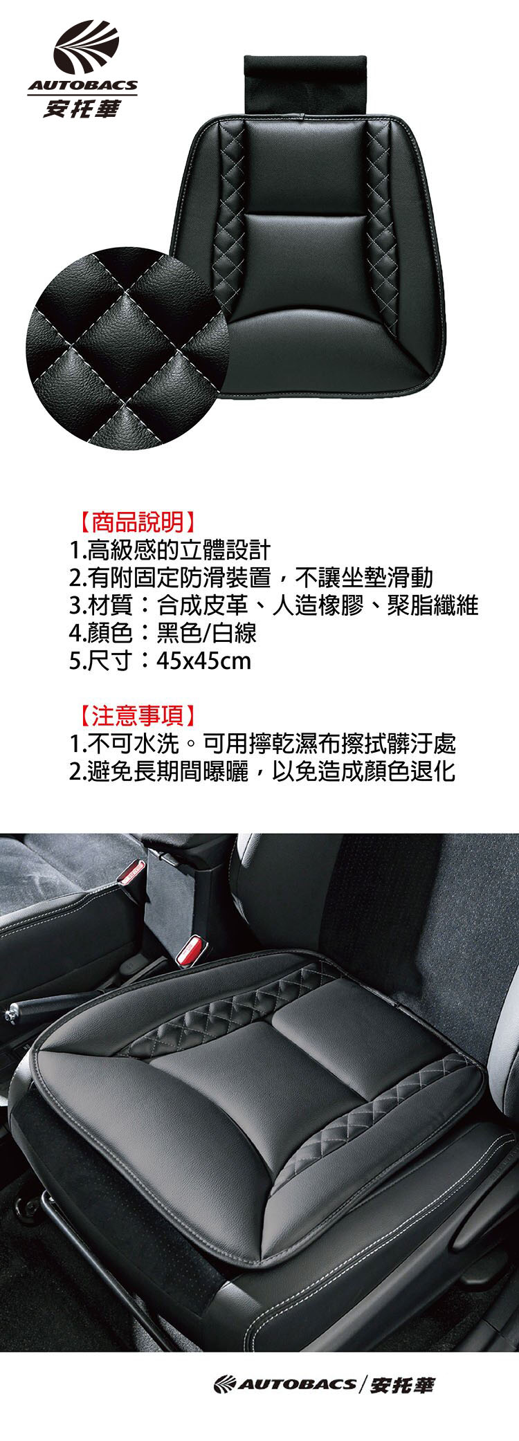 【皮革白線坐墊5615-43BK】