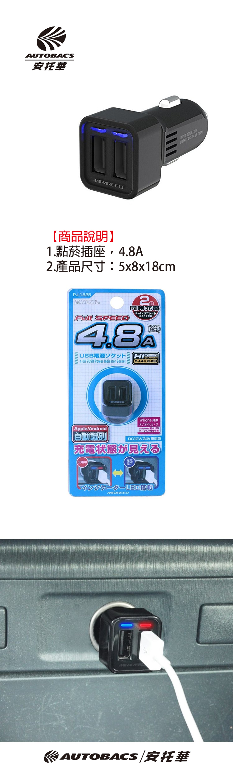 ●點菸插座,4.8A ●產品尺寸:5x8x18cm