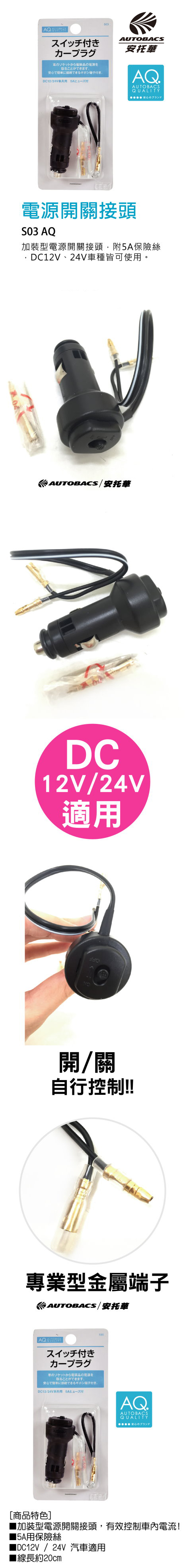 【電源開關接頭DC12V/24V適用】