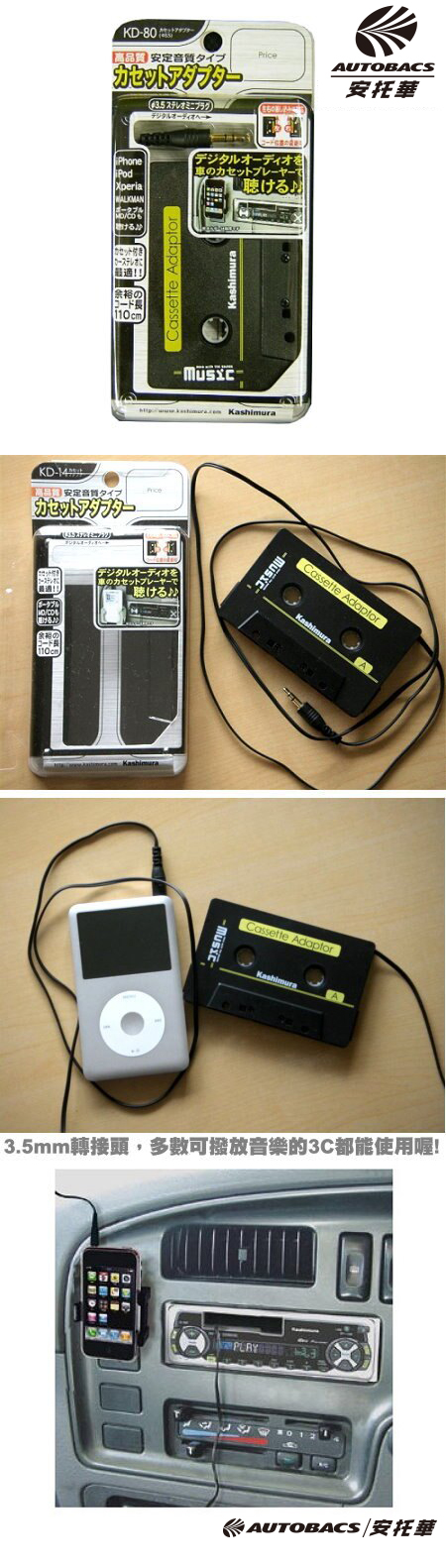 只要是3.5mm耳機插孔都能透過此款轉接器由您舊有的卡帶主機撥放音樂呢! 讚!!