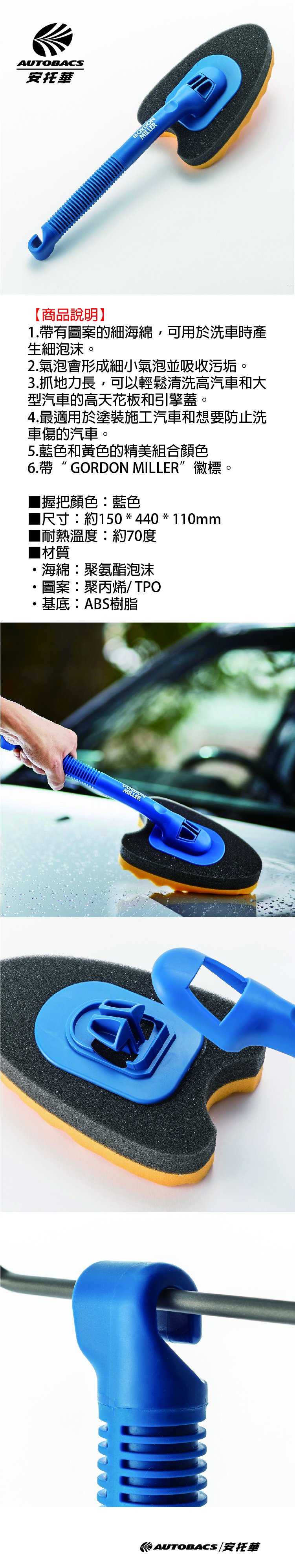 ■抓地力長,可以輕鬆清洗高汽車和大型汽車的高天花板和引擎蓋。