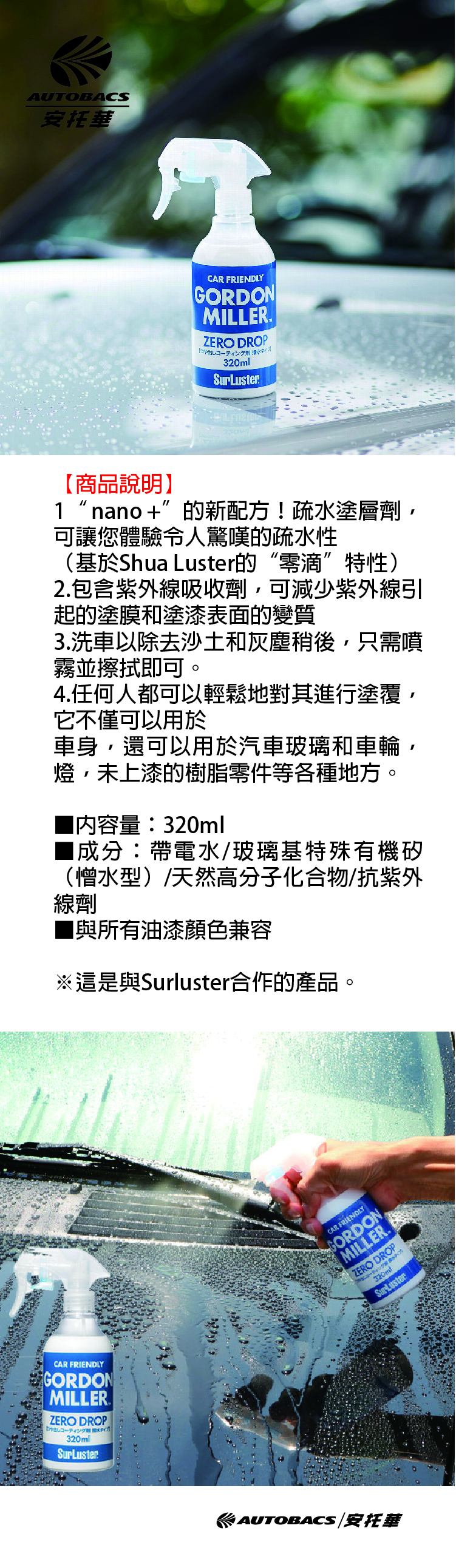 ■成分:帶電水/玻璃基特殊有機矽(憎水型)/天然高分子化合物/抗紫外線劑