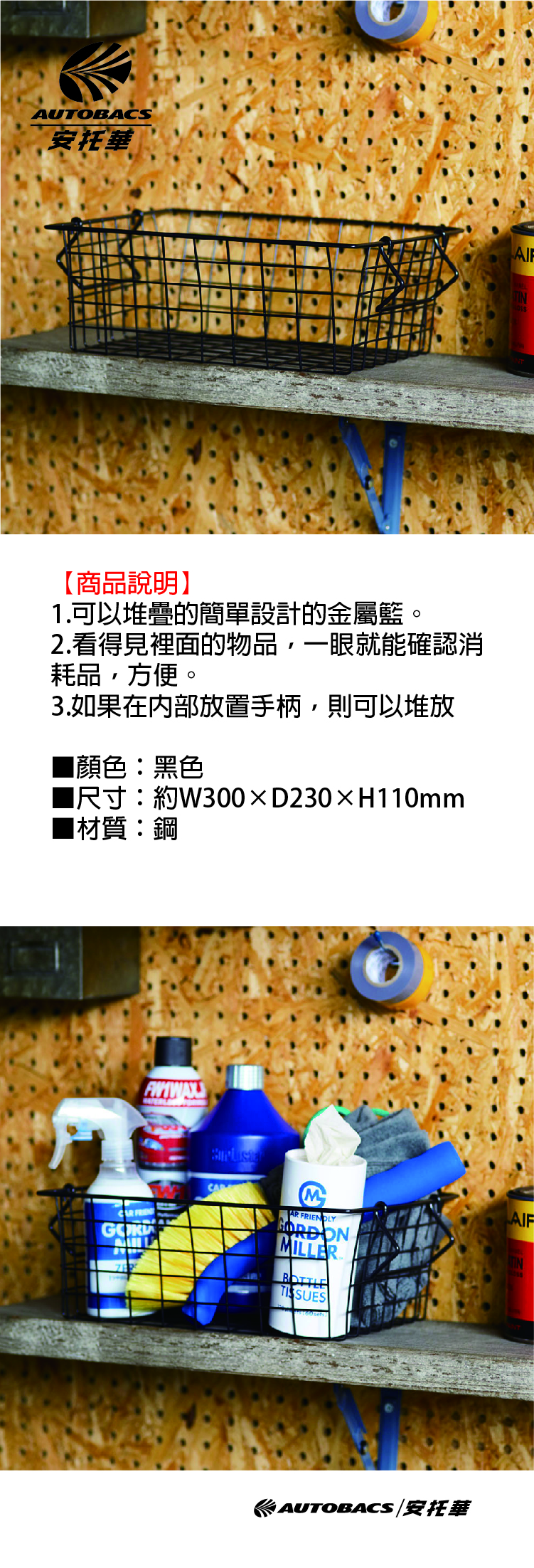 ■可以堆疊的簡單設計的金屬籃。