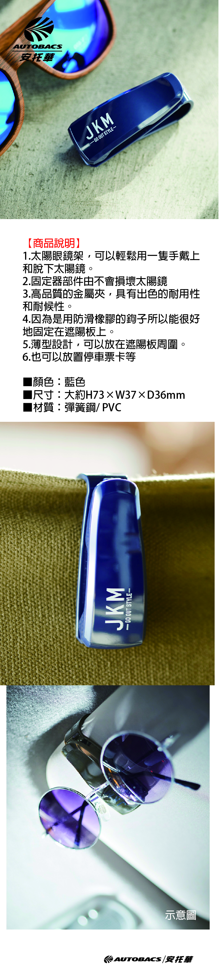 2.固定器部件由不會損壞太陽鏡