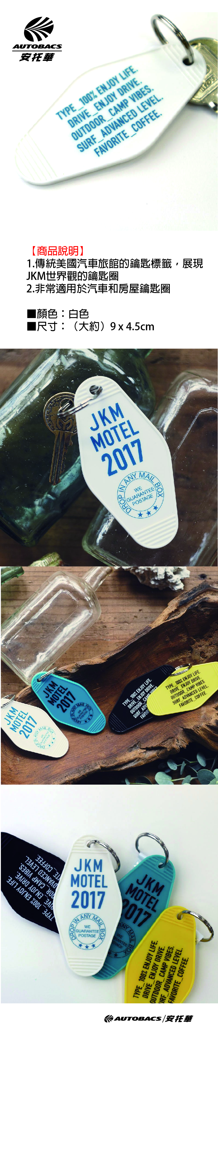 1.傳統美國汽車旅館的鑰匙標籤,展現JKM世界觀的鑰匙圈