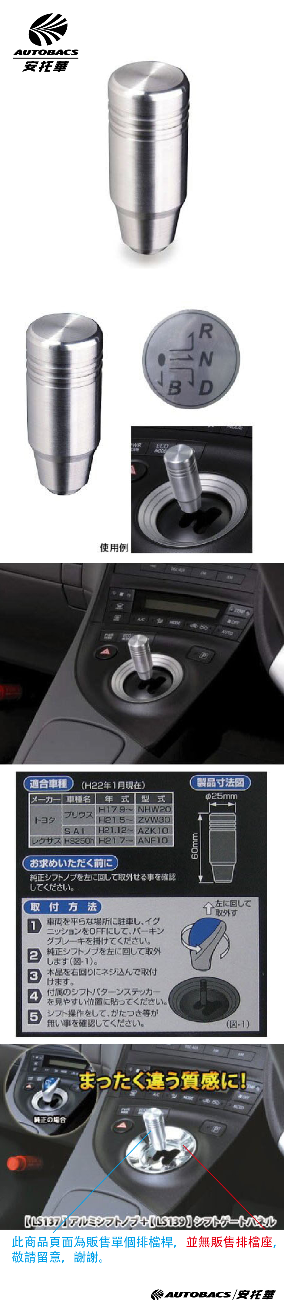 ●高級鋁製旋轉型排檔桿LS137長_TOYOTA PRIUS