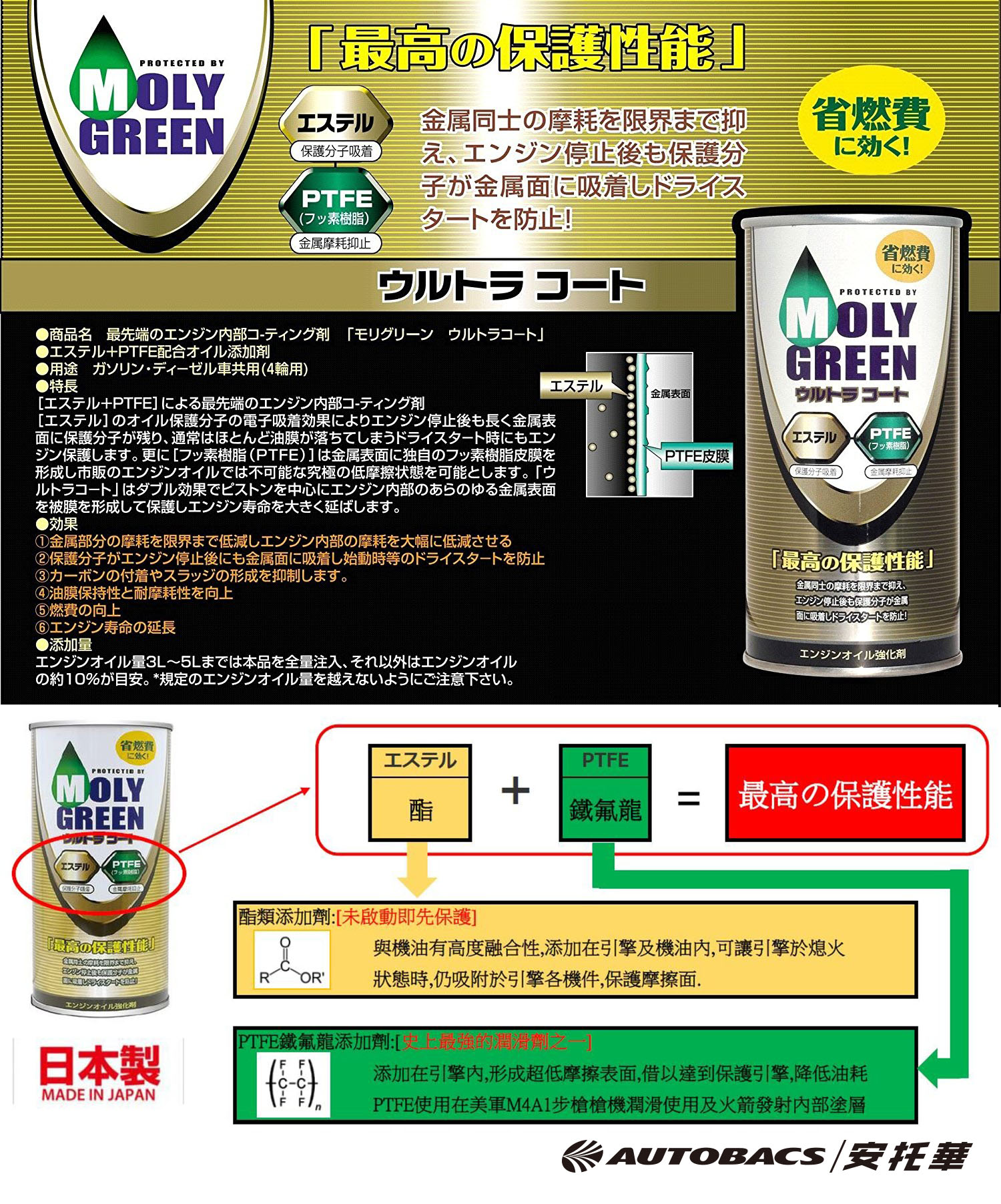 ●日本最新科技,市面獨有酯類引擎保護劑,酯元素+PTFE交融!最好的保護性能,降低摩擦,通過啟動引擎藉由運轉來達到機油的最佳潤滑與保護效果。