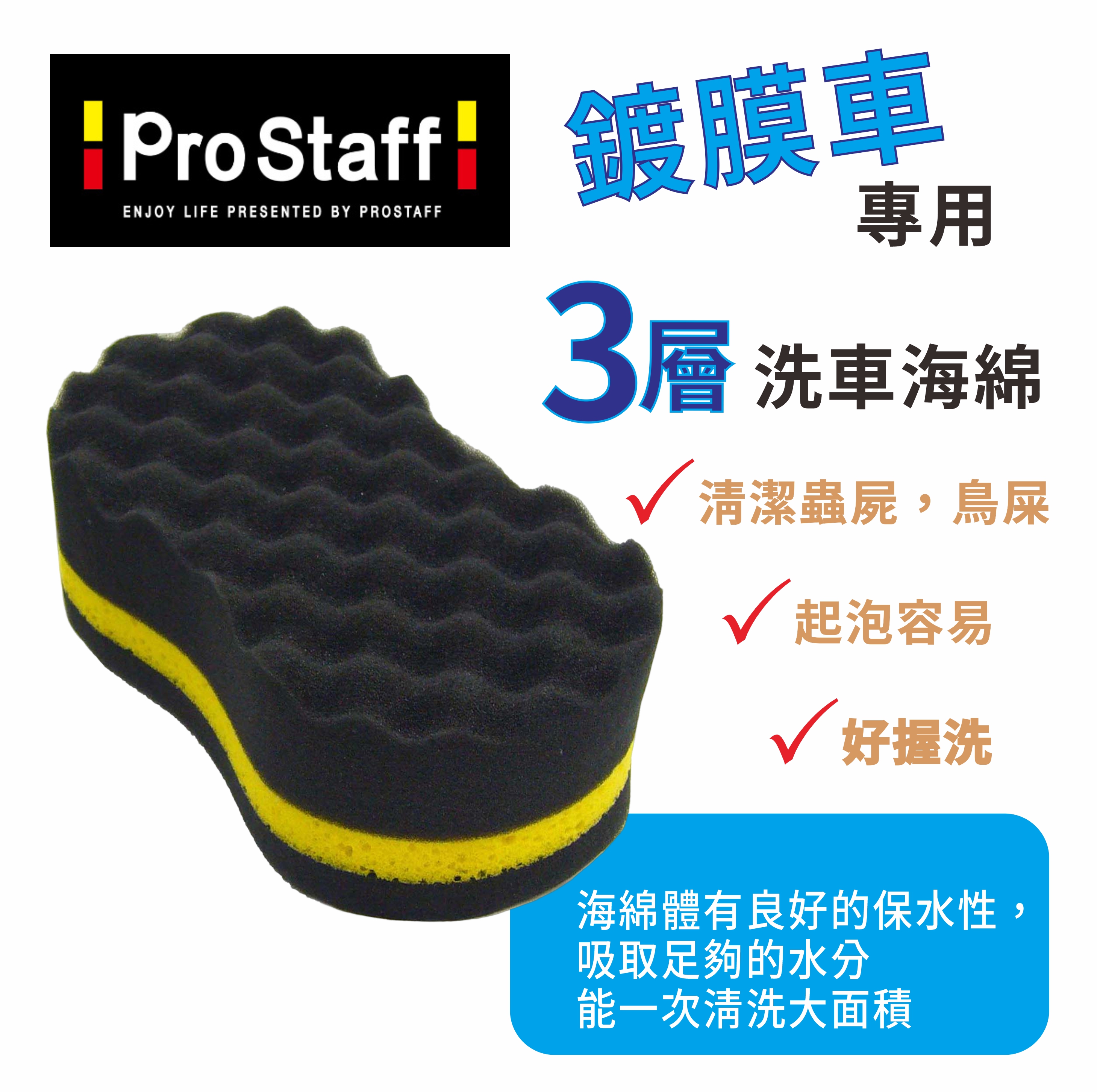 (1)溫和的對待車身、高級材質所製成的鍍膜車專用3層洗車海綿