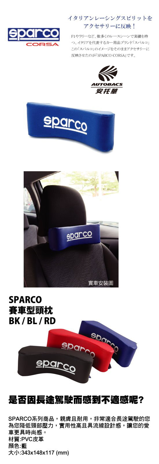 SPARCO CORSA賽車型頭枕06577BL
