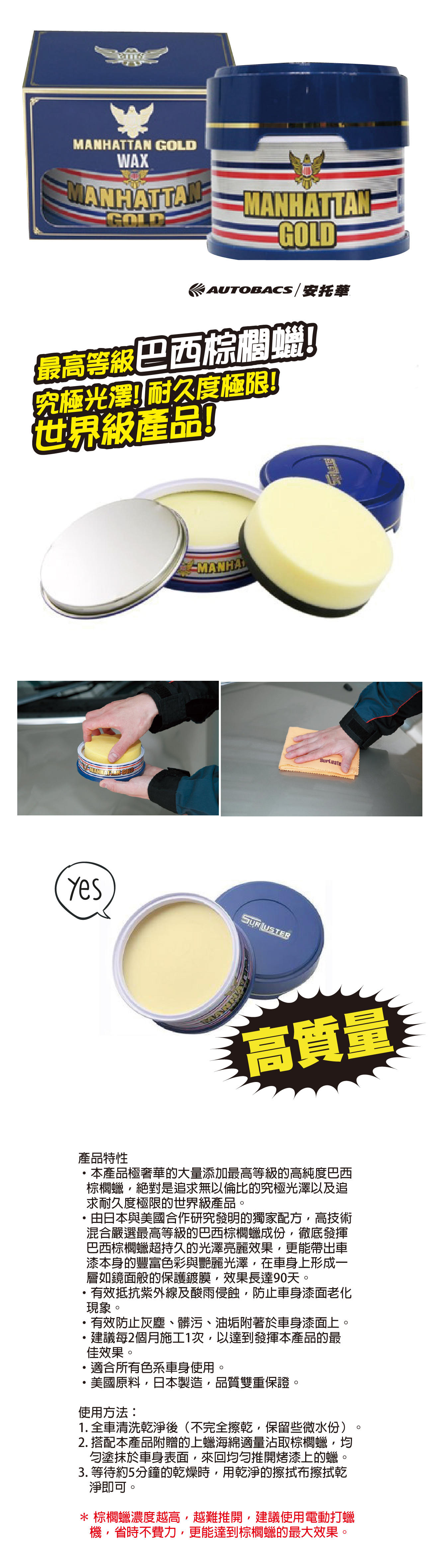 【日本汽車美容熱銷】SURLUSTER黃金曼哈頓高濃度巴西棕櫚腊 / 棕櫚蠟 M-01