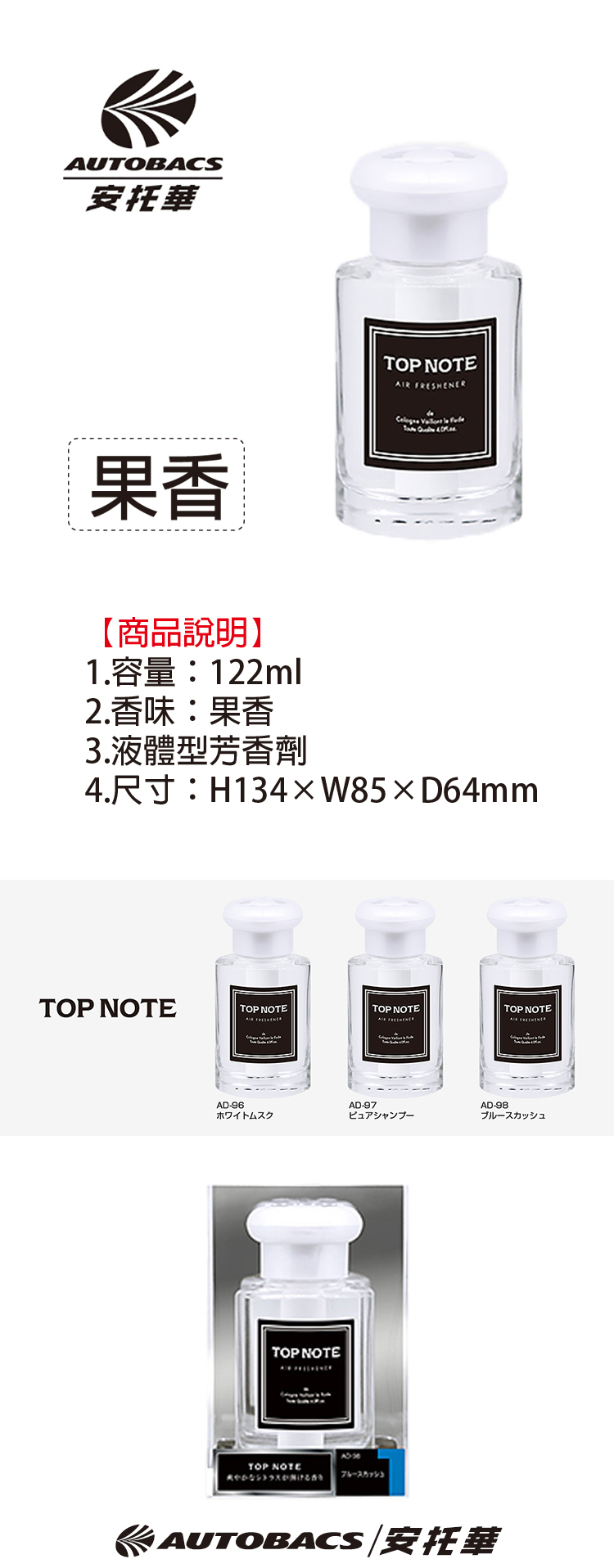 【商品說明】 1.容量:122ml 2.香味:果香 3.液體型芳香劑 4.尺寸:H134×W85×D64mm