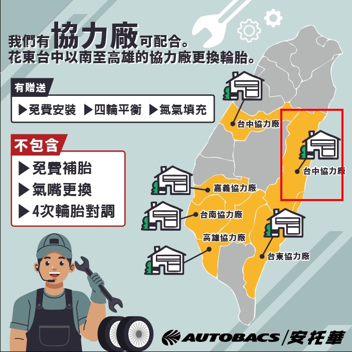 ⚠️⚠️⚠️請注意協力廠只有送四輪平衡/免費氮氣填充/免費安裝。不包含 氣嘴更換 / 免費補胎 / 4次輪胎對調⚠️⚠️⚠️